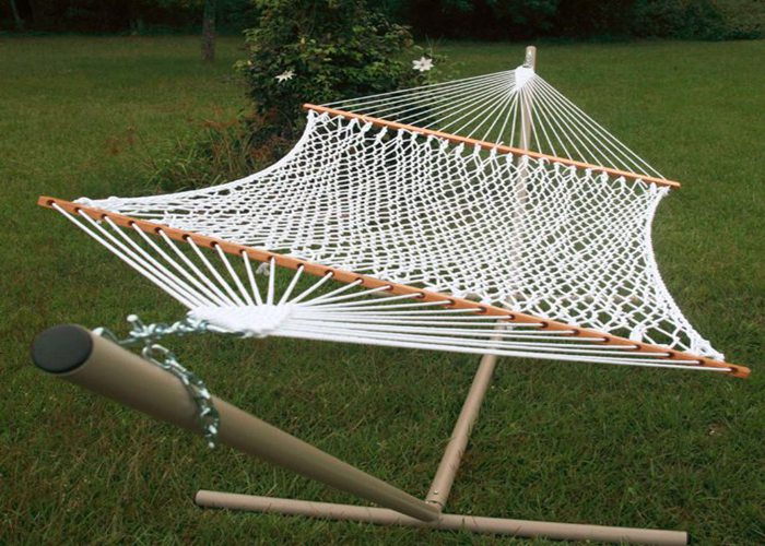 The Deluxe Polyester Rope Hammock is crafted of durable soft polyester rope.